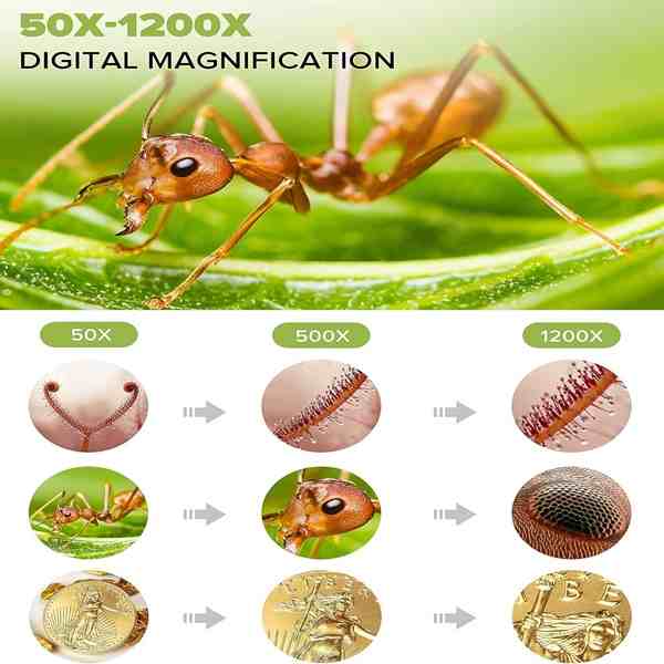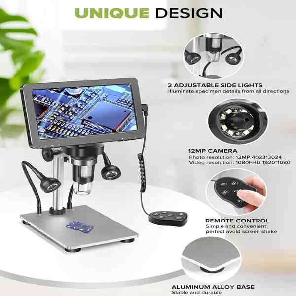 Microscope 50-1200X Maginfication 1080P USB Video Microscope Camera with Wired Remote 10 Adjustable LED Lights for Circuit Board