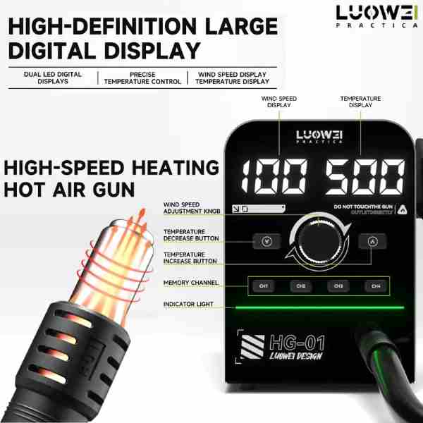 Luowei HG-01 SMD Digital Display Hot Air Gun 800W SMD Rework Station BGA Rework Desoldering Station