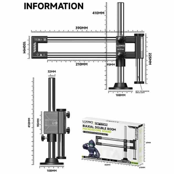 Luowei LW-GK02 Titan 360 Degree Rotating Lift Microscope Universal Dual Axis Swing Arm Stand
