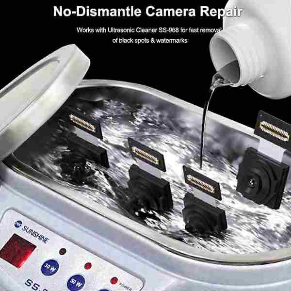 Quick-Evaporating Formula This camera cleaner evaporates rapidly and requires no dilution, making it ready to use straight out of the bottle for efficient cleaning. No-Dismantle Cleaning Effectively cleans camera lenses and removes stains without the need to disassemble the device, saving time and reducing the risk of damage. Removes Stubborn Marks Rapidly eliminates black spots and watermarks inside cameras, restoring clarity to your device’s optics. Safe and Eco-Friendly Colorless, odorless, non-flammable, and leaves no white residue, ensuring a safe and environmentally conscious cleaning experience. ompatible with Cleaning Devices For optimal results, use in conjunction with the ultrasonic cleaner SS-968 to enhance the cleaning process. Specifications: Model: RL-568 Capacity: 500g Formulation: Volatile liquid Bottle Size: 74 x 74 x 175mm Application: Camera lenses and internal components Effectiveness: Removes watermarks, black spots, and dust Note: Use promptly after opening to maintain quality. Package included: 1 x 1000g Camera Lens Cleaning Solution.